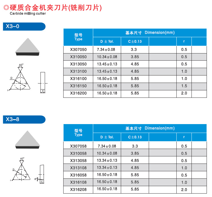 三角形硬質(zhì)合金銑削刀片(鎢鋼機夾刀片)
